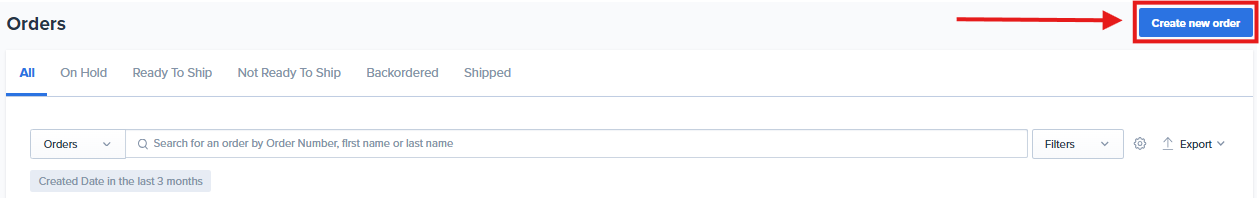 Click on Create New Order button on the righthand side of the screen.