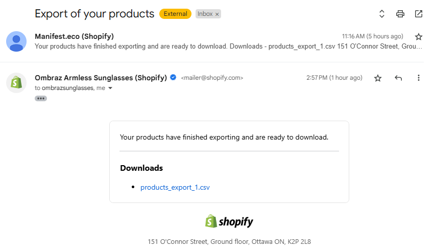 - An email with the export will come through like the one below where you can download the file