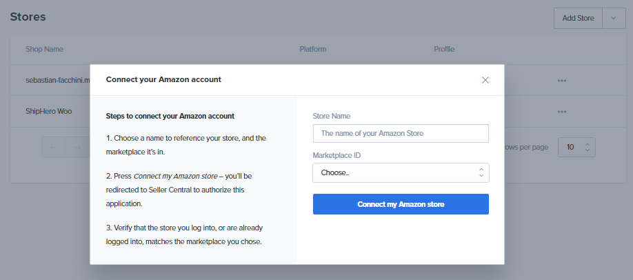 - Complete the form and click Connect My Amazon Store.